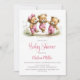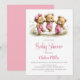 Convites Ursinhos de pelúcia meninas de macacão rosa para c