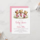 Celebre a chegada iminente do seu pacote de alegria convidando seus amigos e entes queridos para a sua festa de bebê com este convite com três adoráveis ursinhos de pelúcia vestindo macacões rosa e pulando corda. O texto personalizável permite que você adicione facilmente seu nome, data e horário da celebração e as informações de confirmação de presença. Uma variedade de tipos de papel e estilos de canto estão disponíveis para seus convites únicos, juntamente com a opção de baixar se você preferir um formato digital.