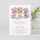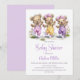Celebre a chegada iminente do seu pacote de alegria convidando seus amigos e entes queridos para o chá de bebê com este convite apresentando três adoráveis ursinhos de pelúcia vestindo macacões de bolinhas e brincando de pula corda. O texto personalizável permite que você adicione facilmente seu nome, data e horário da celebração e as informações de confirmação de presença. Uma variedade de tipos de papel e estilos de canto estão disponíveis para seus convites únicos, juntamente com a opção de baixar se você preferir um formato digital.