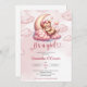 Design para as chamadas de Baby Shower, bonitinho, tem rosa claro de ursinho de pelúcia dormindo sobre a lua e nuvens. Letra de script de desenho em mão moderna. Não hesite em contactar-me para obter itens ou personalizações correspondentes. Rosas de cor Bebê ©