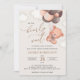 Convide amigos e família de estilo e dê o tom para seu dia especial com este charmoso convite para chás de fraldas. Design apresenta um urso bebê com balões castanhos sobre fundo bege.