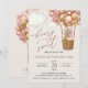 Convide amigos e família de estilo e dê o tom para o seu dia especial com este charmoso convite de aniversário. Design apresenta um urso bebê com balões cor-de-rosa sobre fundo bege.