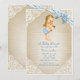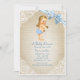 Convites Urso Branco Bebê Menino e Laço Azul em Burlap Chá