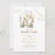 Este Convite para Chás de fraldas Neutros de Gênero apresenta uma ilustração de uma aquarela fofa de um ursinho branco cavalgando um patinete com o ditado "podemos esperar" num tratamento clássico e elegante. Personalize-o com os detalhes do evento. Um belo convite, perfeito para o seu evento!