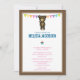 Um belo convite para chás de fraldas com uma ilustração de um urso fofinho castanho com uma margarida amarela. Um banner colorido de bunting se estende pela parte superior. Um cupcake no centro.