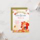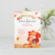 Esta design apresenta elementos de outono de outono com folhas de folhagem vermelha, laranja e amarela com um esquilo fofo com uma bolota. Perfeito para uma festa de chá de fraldas de menino ou menina!