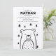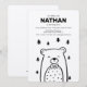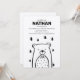 Design minimalista apresenta um urso em uma gravata arco na floresta. Personalize esses convites para qualquer evento. Impresso em papel kraft castanho liso. ©2020 Copyright, Dio Perez