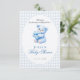 Convites Urso de Gingham Azul Churrasco de Bebê Neutro