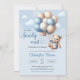 Convites Urso de pelúcia azul e castanho com balões