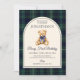 Convites Urso de pelúcia com laço azul no xadrez de anivers