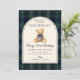 Este convite de aniversário fofo, com um ursinho em um fundo xadrez, pode ser personalizado com todas as informações do seu evento especial. Criado por Thisisnotme©