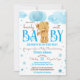 Convites Urso de pelúcia que espera chá de fraldas azul e c