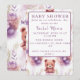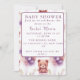 Convites Urso de pelúcia roxo e flores - Chás de Bebê