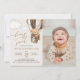 Convide amigos e família de estilo e dê o tom para o seu dia especial com este charmoso convite de aniversário. Design apresenta ursinho de pelúcia no balão de ar quente castanho sobre fundo bege.