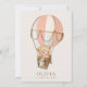 Convide amigos e família de estilo e dê o tom para o seu dia especial com este charmoso convite de aniversário. Design apresenta um ursinho de pelúcia num balão de ar quente cor-de-rosa sobre fundo bege.