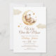 Sobre a Lua Gênero Neutro Chá de fraldas Invitation apresenta uma ilustração fofa de um ursinho de pelúcia descansado sobre uma lua amarela, com um tratamento elegante de escrita. Personalize-o com os detalhes do evento. Um belo convite, perfeito para o seu evento!