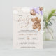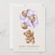 Convide amigos e família de estilo e dê o tom para seu dia especial com este charmoso convite para chás de fraldas. Design apresenta um ursinho de pelúcia com balões roxos sobre fundo bege.