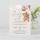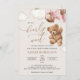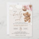 Convide amigos e família de estilo e dê o tom para seu dia especial com este charmoso convite para chás de fraldas. Design apresenta um ursinho de pelúcia com balões cor-de-rosa sobre fundo bege.