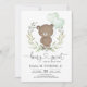Convites Urso de Teddy Verde com primeiro aniversario de Ga