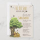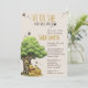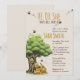 "Celebre a chegada do seu pequeno querido com um convite cheio de charme atemporal de livro de histórias. Este convite caprichoso para chá de bebê apresenta um adorável urso clássico sentado feliz sob uma grande árvore de carvalho com um doce pote de mel. Abelhas alegres zumbem em torno do anúncio "Ele ou Ela", tornando este o design perfeito para uma festa mágica de revelação de gênero.