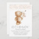 Organizando um chá de fraldas e procurando um convite para o chá de fraldas, esses convites para chuveiros para bebês neutros em relação a gênero serão a adição perfeita ao seu planejamento. Apresentando o ditado "NÓS PODEMOS ESPERAR!", uma ilustração de um ursinho de aquarela segurando grama-pampas, flores delicadas de pêssego e um modelo de convite para na moda que é facilmente editado. Os estilos de fonte, o tamanho e a cor podem ser alterados clicando-se no link personalizar depois de personalizar.