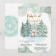 Celebrar a chegada iminente de um filhote precioso com o nosso adorável convite para chás de fraldas inspirado no urso polar, "bebê que está frio lá fora", tudo colocado contra o pano de fundo de uma serena floresta de pinheiros de neve.