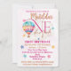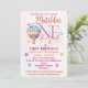 Convites Urso em um balão de ar quente rosa