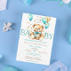 Ursinho de pelúcia fofo bonito com um arco antes de esperar aqua azul marrom com balões ouro borrifados chá de fraldas convite modelo instantâneo download