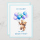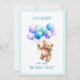 Personalize este Urso de Teddy com aquarelas segurando balões coloridos design Frente: OH BABY! podemos ESPERAR: Detalhes do convite para você personalizar.