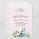 Urso Polar De Inverno Frio Fora Do Convite Ao Chá de fraldas Rosa. Escrita moderna, tipografia de tendências e uma cena de neve rosa com um urso polar adorável e verde de férias fazem do Bebê perfeito o tema Frio Exterior. Entre em contato conosco para obter solicitações personalizadas em simpledesertdesigns@gmail.com!