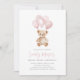 Convites Urso Rosa-Rosa-Rosa-Balão - Primeiro Aniversário