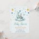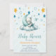 Convites bonitos com um adorável urso bebê na lua e estrelas amarelas azuis. Esses convites para chuveiros de bebês elefantes são facilmente personalizados para seu evento simplesmente adicionando seus detalhes de evento.