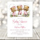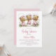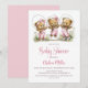 Celebre a chegada iminente do seu pacote de alegria convidando seus amigos e entes queridos para a sua festa de bebê com este convite com três adoráveis ursinhos de pelúcia vestindo macacões rosa e pulando corda. O texto personalizável permite que você adicione facilmente seu nome, data e horário da celebração e as informações de confirmação de presença. Uma variedade de tipos de papel e estilos de canto estão disponíveis para seus convites únicos, juntamente com a opção de baixar se você preferir um formato digital.