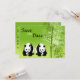 Anúncio de Ursos Panda e Bambu Casamento Save the Date em Verde, Preto e Branco.