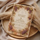 Um design romântico inspirado em vinhas, emoldurado por ricas cachos de uvas e folhas em tons de outono, capturando a calidez e a elegância de uma celebração no campo toscano. Os detalhes botânicos intrincados e a paleta vintage suave criam uma atmosfera refinada, mas convidativa, perfeita para amantes de vinho e casamentos estilo destino. Com sua composição atemporal e charme antigo, este design traz um senso de intimidade, abundância e luxo tranquilo para o seu dia especial.