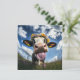 Uma imagem lúdica e aproximada de uma vaca em um prado ensolarado, adornada com uma coroa floral vibrante feita de margaridas e flores silvestres. A vaca põe a língua para fora, acrescentando um toque de humor e charme à cena. O céu azul brilhante e as nuvens suaves no fundo aumentam ainda mais a alegria e caprichosa sensação da imagem.