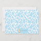 Vaca-bebê em uma nuvem azul pulando sobre a lua e um padrão de vaca azul. Mamãe vai adorar este convite de chá de fraldas com sotaques de flores azuis para bebês. Use modelo fácil para adicionar os detalhes da sua festa.