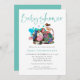 Vaca Bonita Dormindo Chá de fraldas Teal Neutro Por Gênero. Amizade animal de quintal com um roteiro de conjunto informal de na moda para o Chá de fraldas de cabeceira em chalé e um fundo teal de coordenação do outro lado. Você pode personalizar facilmente o resto do texto para suas próprias necessidades e alterar as cores de fundo se desejar por meio da opção personalizar mais.