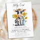 Convide seus amigos e família para comemorar a chegada do seu novo bebê com este adorável bezerro de leite e flores do sol convites para chuveiros de bebês, acessórios de festas e presentes. Este convite para chás de fraldas apresenta uma vaca a cores-d'água pintada à mão, perfeita para amantes de fazendas e vacas! A design é moderna e moderna, com um simples esquema preto branco e amarelo e texto "Santa Vaca" para celebrar a chegada de um menino ou menina. COPYRIGHT © 2023 Judy Burrows, Black Dog Art - Todos Os Direitos Reservados. Vaca Cura Cura Girassol Fazenda Moderna Convite para Chás de fraldas