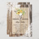 Carteira de convite para chá de casamento ocidental russa, design com buquê de girassol sobre o crânio de longo curso, com planaltos de madeira em celeiro e rendas brancas e um coração com monograma e girassóis.