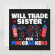 Engraçado 4 de julho, citando design, "Will trade cunha irmã for firecrackers". Celebre o dia da independência americana por ter esta roupa engraçada. Apresentando fogos de artifício e fogos de artifício dos EUA, isso faz com que um belo presente patriótico sirva para irmão e irmã. Legal dia 4 de julho combinando presentes para irmã, irmão, amigo, colega de trabalho... Roupa perfeito para qualquer patriota americano e amante dos EUA celebrar o dia da independência dos EUA, 4 de julho. Irmãos e irmãos lindos amantes de fogos de artifício que combinam.