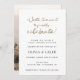 Convite recepção de casamento com "Vale a pena esperar para finalmente celebrar!" em um roteiro alegre de folha de ouro. Personalize com sua foto na parte traseira ou exclua se nenhuma foto for desejada.