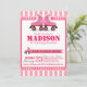 Celebre a sua festa de aniversário com o nosso design desportivo Skate-rolo rosa. Apresentando calçados de patinação de cilindro em um padrão de listras rosa. Este design de moda é perfeito para discoteca roller ou festa brilhante. Um convites de festas perfeito de patinação Roller para a festa de patinagem, festas de patinagem, festas de patinagem, festas de patinagem de roletas brilhantes.