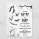 Celebrar a chegada com nosso Chá Invitation "We'are Indo Batty for Baby", recursos que atraem morcegos pretos e um vetor de árvore assombrosa, posicionados contra um fundo branco nítido. Este design combina perfeitamente a diversão assustadora com um toque de elegância, fazer ideal para um chá de fraldas temático do Dia das Bruxas. BBS788