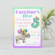 Convite de 5º Aniversário para Vamos nos Reunir e Brincar com Cavalos. Reúna as amigas da sua filha para um verdadeiro aniversário divertido com balões e jogos de cavalos. Brinquem de pregar o rabo no pônei, bingo de cavalos ou façam uma corrida de cavalos de pau.