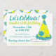 O convite apresenta uma ilustração original de um chapéu de bolinhas verde, azul e amarelo, com o VAMOS CELEBRATE em fonte divertida. Ideal para uma festa de aniversário, véspera de Ano Novo, ou outra celebração. Não vê o que está procurando? Precisa de ajuda para a personalização? Entre em contato com Rebecca para ter algo projetado só para você.