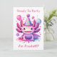 Os convites de festas de aniversários da menina do Axolotl, cor-de-rosa e roxo. Um axolô fofo num chapéu de aniversário com balões.