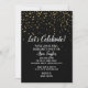 Este Vamos celebra Confetti Dourado no convite à Festa de solteira Negra é perfeito para honrar a futura noiva. O design apresenta o moderno confete de ouro falso e elegante caligrafia branca sobre fundo preto.