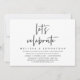 Cartão de convite de casamento com tema Modern Script (Vamos celebrar). É perfeito para o seu jantar de casamento informal à beira do lago, dança e festa.
