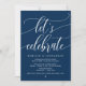 Linda Caligrafia Moderna Simples Azul-Marinho, Anúncio de Casamento Intimo, Cartão de Convite (Vamos celebrar). Isto é perfeito para a sua recepção de casamento e festa de celebração pós-casamento. Adicione os seus detalhes em letra / caligrafia correspondente.